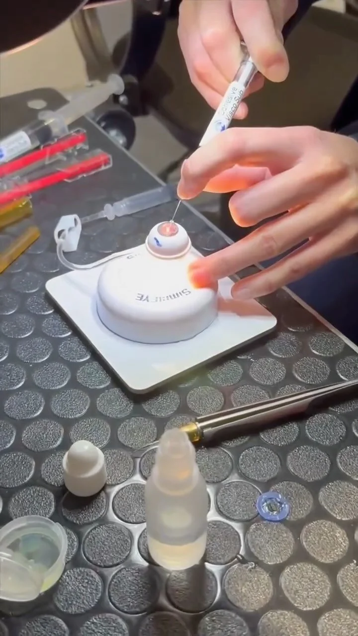 He found that by wrapping the film around a malleable body like Silly Putty, the device could be held in the non-dominant hand while the surgeon could practice the CCC technique with the dominant hand. A big advantage of this was the ability to increase the pressure of the non-dominant hand which would cause the film to elevate into a dome and simulate the loss of viscoelastic from the anterior chamber. Performing the CCC technique in this way was more challenging as the tear would tend to run downhill and outward just like in a surgical setting.