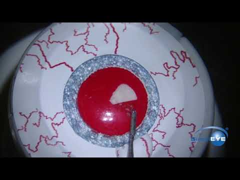 This is the first model developed which is specifically for capsulorhexis training. A total of 5 or 10 capsulotomies can be performed with each SimuloRhexis Kit. Corneal incisions need to be made, the anterior chamber must be filled with viscoelastic and a CCC can then be created. The pressure behind the capsule can be increased for greater difficulty. The anterior capsule will bow forward causing the anterior chamber to shallow while making the tear want to run down the slope and outward. Rescue maneuvers can be practiced and perfected.